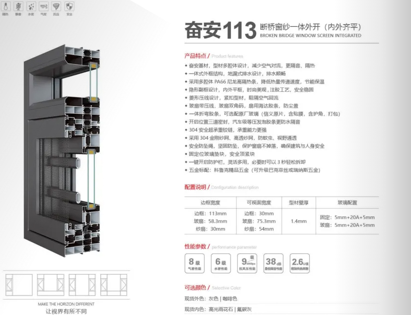 奋安113断桥窗纱一体外开(内外齐平)