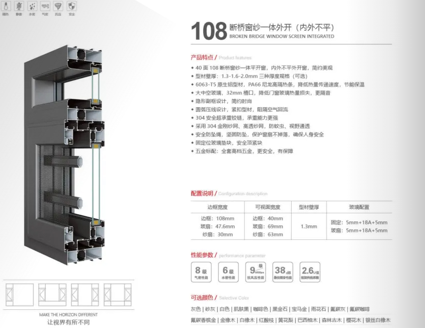 108断桥窗纱一体平开窗